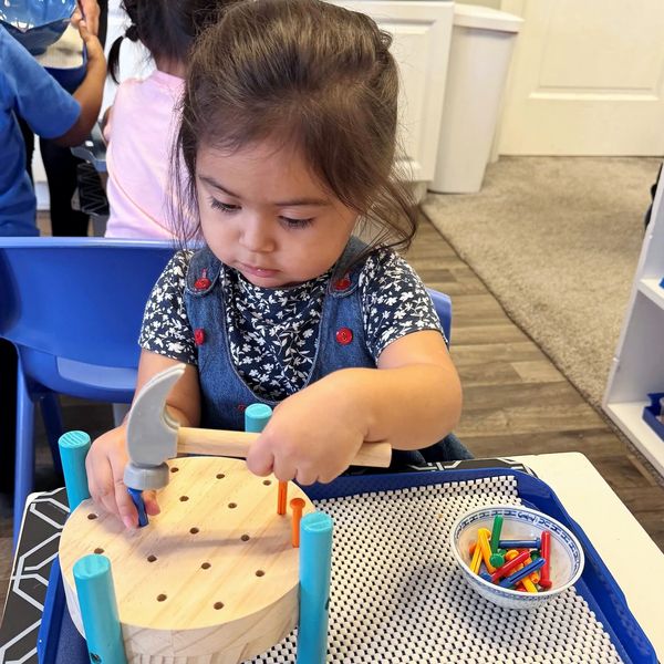 The Toddler classroom is a safe and nurturing environment consisting of appropriate shelving and activities geared toward 18- to 36-month old children. During the Sensitive period, the Toddler begins to learn independence, self reliance, fine and gross motor skills, grace and courtesy, cognitive skills in a prepared environment.